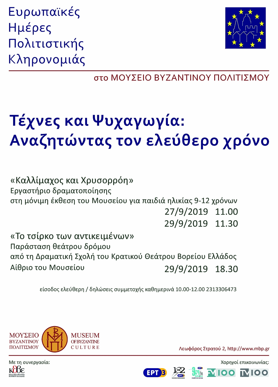 Την Κυριακή 29 Σεπτεμβρίου 2019 στις 11.30 το εργαστήριο δραματοποίησης “Καλλίμαχος και Χρυσορρόη” θα είναι ανοικτό στο κοινό (παιδιά ηλικίας 9-12 χρόνων) κατόπιν δηλώσεων συμμετοχής.