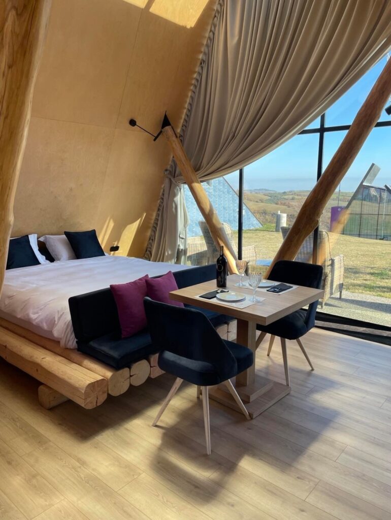Και η χαλάρωση δίπλα στη φύση συνεχίζεται με την μοναδική κυλινδρική πανοραμική σάουνα, ειδικά σχεδιασμένη για το χώρο του καταλύματος από γυαλί-τζάμι και με θέα προς το δάσος. Επιπλέον, στο χώρο του prive spa, η περιμετρική γωνία είναι κατασκευασμένη από γυαλί ώστε όταν ο επισκέπτης χαλαρώνει στις πολυθρόνες ή χρησιμοποιεί το υδρομασάζ να απολαμβάνει παράλληλα τις ομορφιές και τα επιβλητικά τοπία της φύσης.