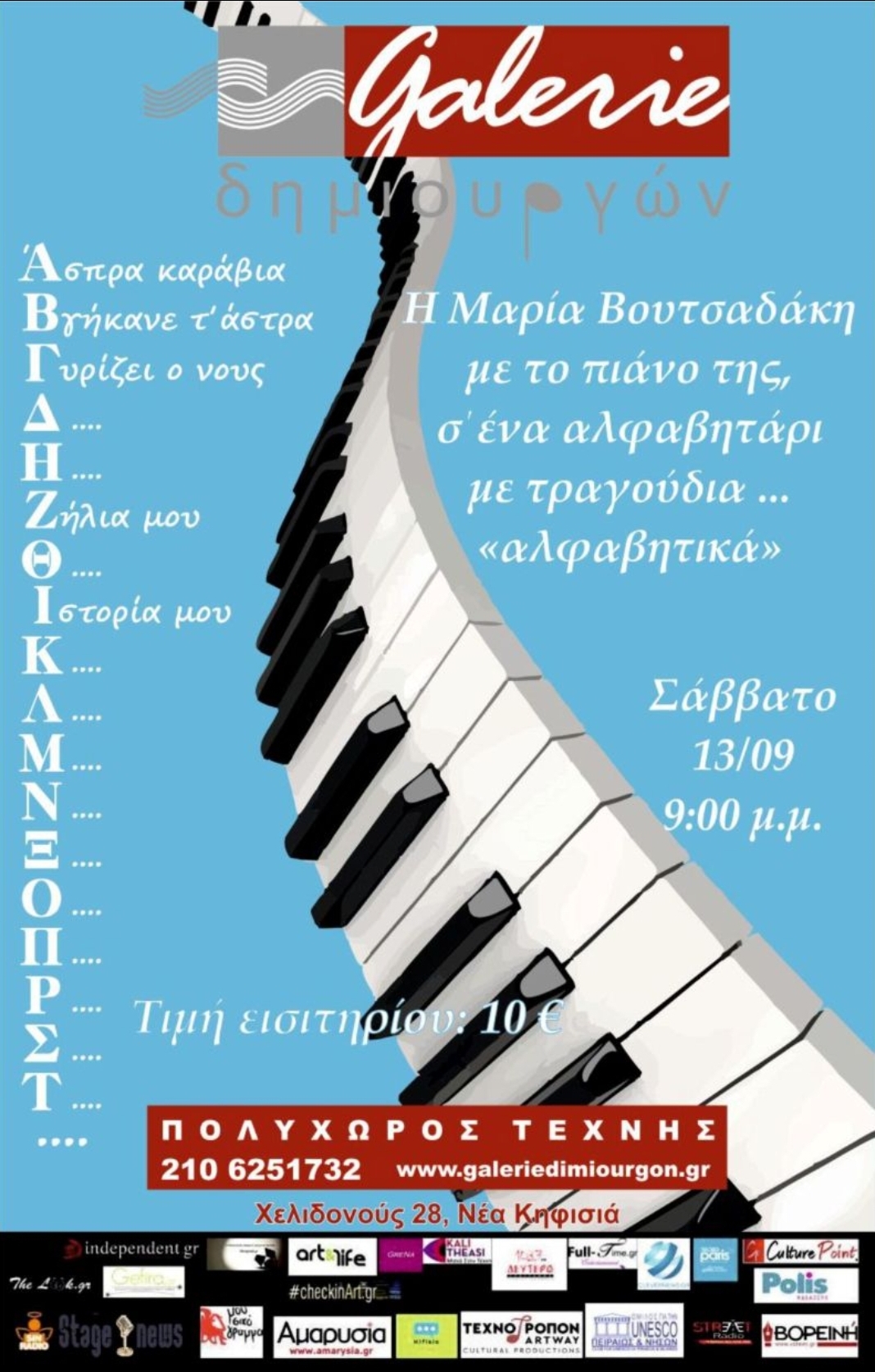 Το Σάββατο 13/9/25 η Μαρία Βουτσαδάκη μάς καλεί να ξεφυλλίσουμε μαζί της ένα αλφαβητάρι από τραγούδια.