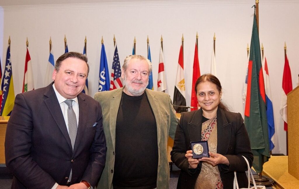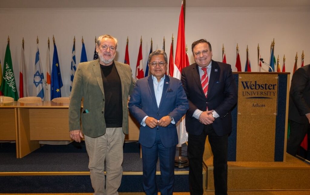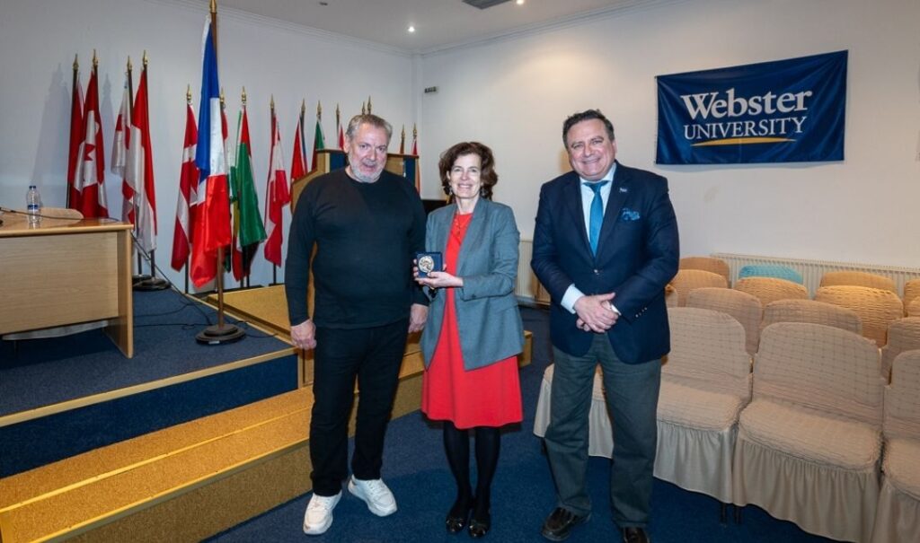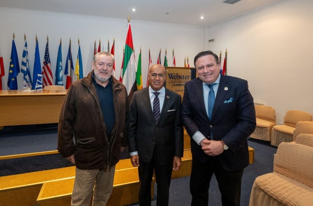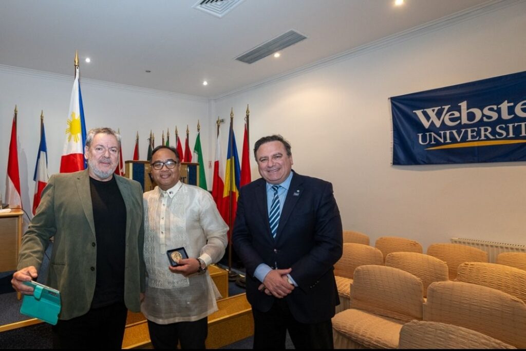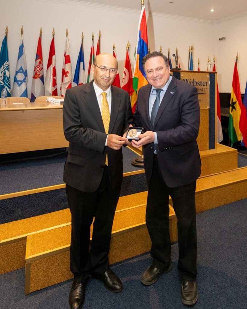 Μεγίστη διάκριση αποτελεί η προσφορά του προς τους πρέσβεις που συμμετείχαν ως κεντρικοί ομιλητές, στο Διεθνές φόρουμ του Αμερικανικού Πανεπιστημίου Webster Athens, (Γαλλία, Ηνωμένα Αραβικά Εμιράτα, Αρμενία, Ισραήλ, Φιλιππίνες, Μπαγκλαντές, Ινδονησία Γεωργία) φιλοτεχνώντας ενα χειροποίητο πιστό αντίγραφο αρχαίου νομίσματος με την προτομή του Μεγάλου Αλεξάνδρου, λαμβάνοντας ιδιαίτερη τιμή και διεθνή αναγνώριση, μετά την προσφώνησή του από τον εντεταλμένο και διαπιστευμένο των Πρεσβειών κ. Κυριάκο Μαριδάκη.