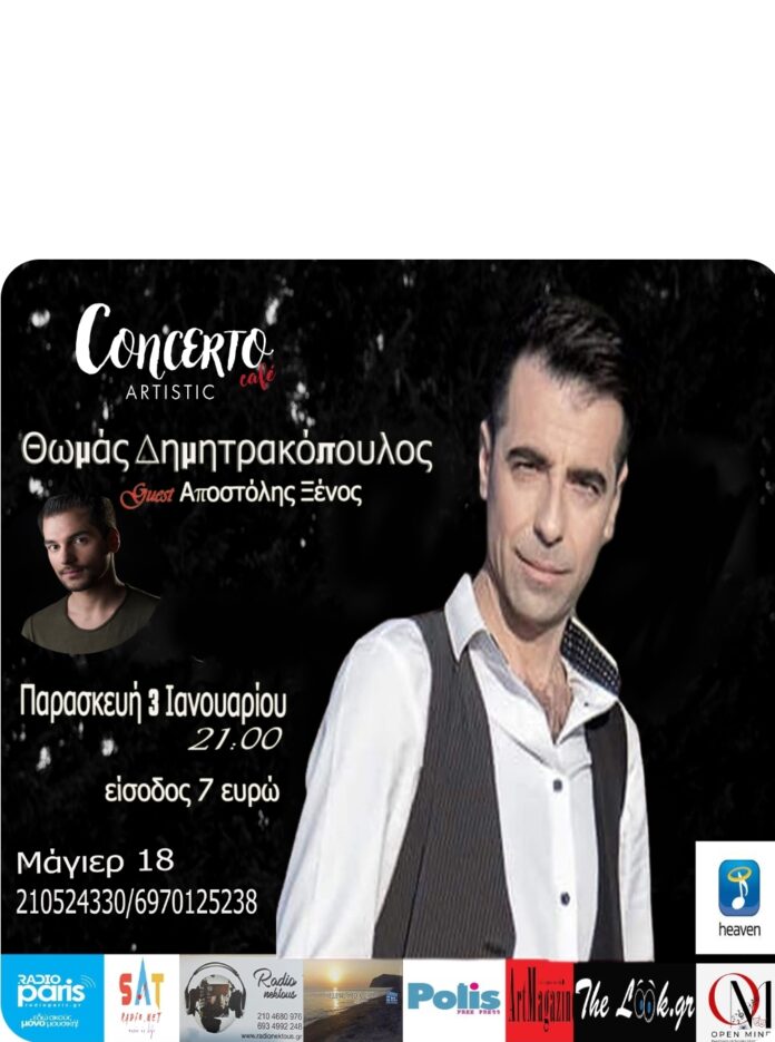 Ο αγαπημένος τραγουδιστής Θωμάς Δημητρακόπουλος επιστρέφει στην μουσική σκηνή του Concerto Cafe Artistic για μια αξέχαστη βραδιά γεμάτη με μουσική και συναίσθημα.