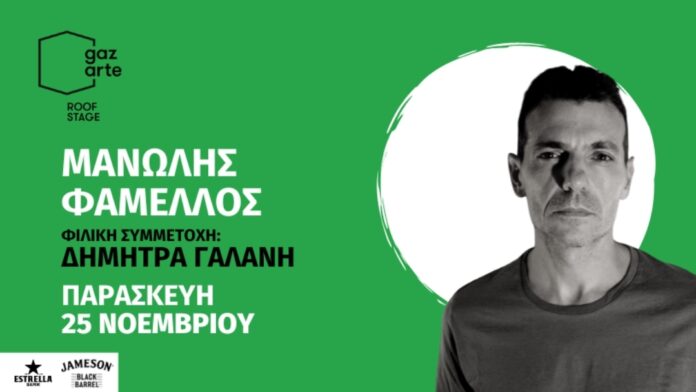 Στην φεγγαρόφωτη σκηνή του Gazarte Roof Stage, επιστρέφει ο “άνθρωπος-νησί” Μανώλης Φάμελλος την Παρασκευή 25 Νοεμβρίου, μετά από πολύμηνη απουσία στην ανεμοδαρμένη του νοητή βραχονησίδα.