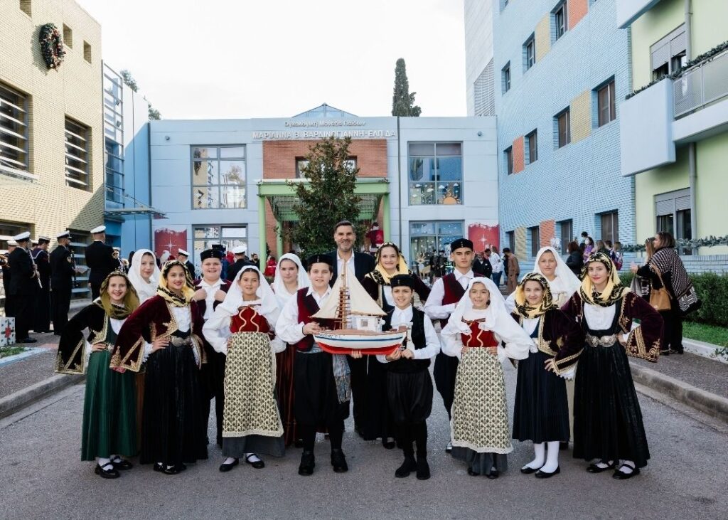 Η Πρόεδρος του Σωματείου «ΕΛΠΙΔΑ» Χριστιάννα Β. Βαρδινογιάννη, με το Διοικητή της Ογκολογικής Μονάδας «Παίδων Μαριάννα Β. Βαρδινογιάννη-ΕΛΠΙΔΑ» Μανώλη Παπασάββα, μέλη του ΔΣ των Σωματείων «ΕΛΠΙΔΑ» και «ΟΡΑΜΑ ΕΛΠΙΔΑΣ», ιατρικό και νοσηλευτικό προσωπικό της Μονάδας και την Μπάντα του Πολεμικού Ναυτικού