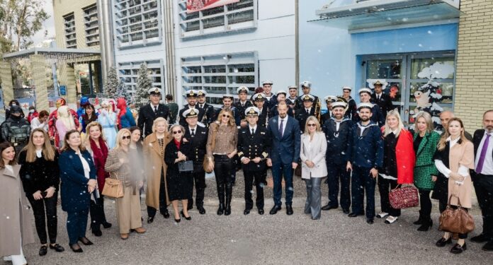 Η Πρόεδρος του Σωματείου «ΕΛΠΙΔΑ» Χριστιάννα Β. Βαρδινογιάννη, με το Διοικητή της Ογκολογικής Μονάδας «Παίδων Μαριάννα Β. Βαρδινογιάννη-ΕΛΠΙΔΑ» Μανώλη Παπασάββα, μέλη του ΔΣ των Σωματείων «ΕΛΠΙΔΑ» και «ΟΡΑΜΑ ΕΛΠΙΔΑΣ», ιατρικό και νοσηλευτικό προσωπικό της Μονάδας και την Μπάντα του Πολεμικού Ναυτικού