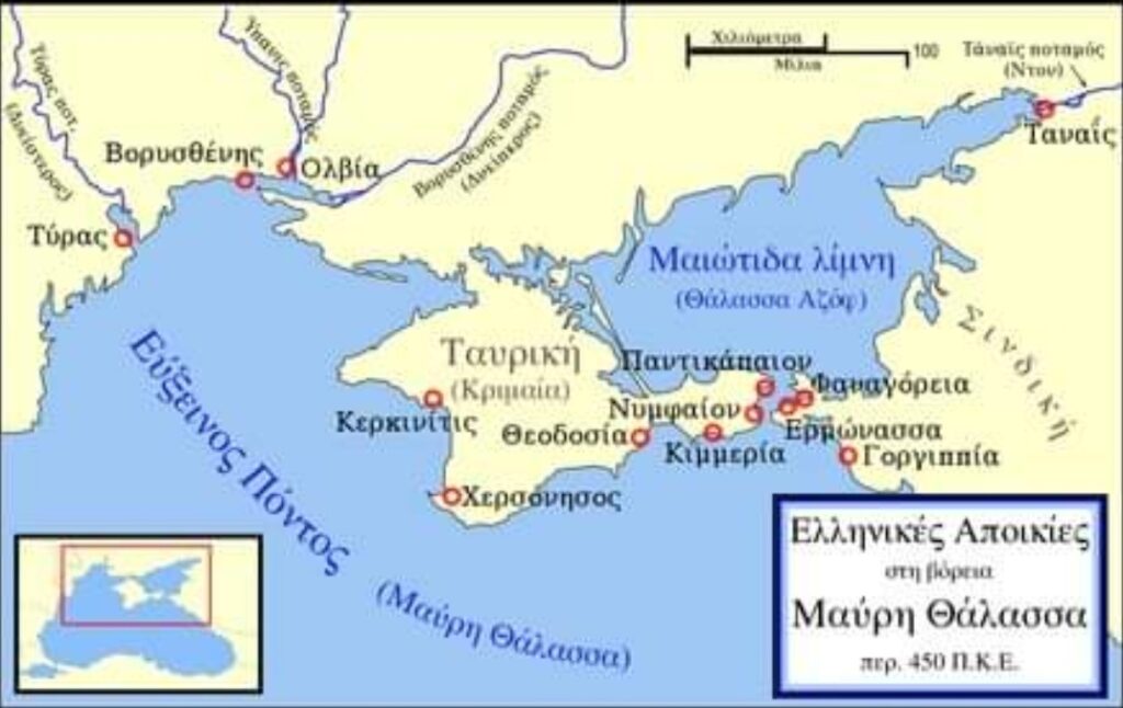 Οι ονομασίες οι παλαιές στον χάρτη της Κριμαίας -ακόμα και αν σήμερα έχουν αλλάξει χωρίς να έχουν ξεχαστεί τελείως- φανερώνουν την εκεί έντονη ελληνική παρουσία στους αιώνες που πέρασαν: Μαιώτιδα λίμνη, Κιμμερία, Νυμφαίον, Ολβία, Ταυρική…