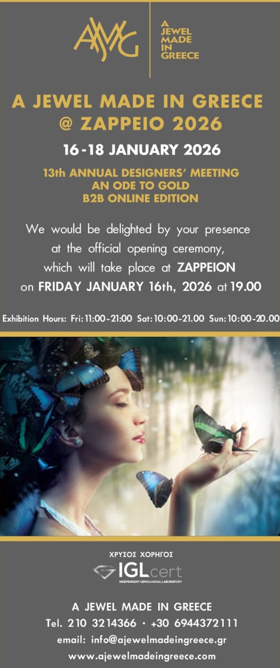 Η πλατφόρμα A Jewel Made In Greece (AJMIG) επιστρέφει δυναμικά στο Ζάππειο Μέγαρο και ανανεώνει το δημιουργικό της ραντεβού με το κοινό, παρουσιάζοντας την 13η Ετήσια Συνάντηση Δημιουργών Ελληνικού Κοσμήματος, που θα πραγματοποιηθεί στις 16, 17 και 18 Ιανουαρίου 2026.