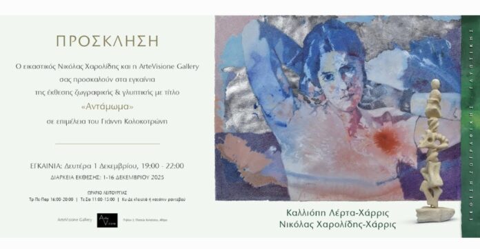 Με μεγάλη χαρά ανακοινώνουμε την έκθεση “ΑΝΤΑΜΩΜΑ” των Καλλιόπη Λέρτα και Νικόλα Χαρολίδη που πρόκειται να πραγματοποιηθεί στον Χώρο Τέχνης ArteVisione-Nicos Chiotinis.