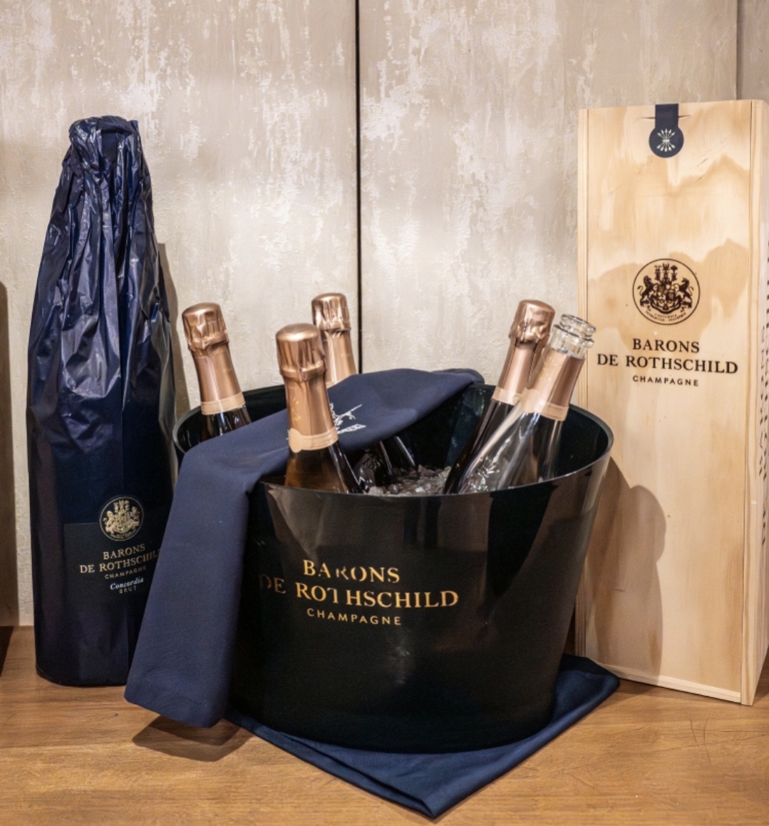 Έτσι, το 2005 γεννήθηκε η Champagne Barons de Rothschild, μια δημιουργία που εκφράζει την κοινή φιλοσοφία της οικογένειας γύρω από την τέχνη της οινοποίησης, την κομψότητα και τη γαλλική art de vivre. Στον πυρήνα της ταυτότητάς της βρίσκονται τρεις θεμελιώδεις αρχές: η Concordia, που εκφράζει την ενότητα και την αρμονία της οικογένειας γύρω από ένα κοινό όραμα· η Integritas, που αποτυπώνει την καθαρότητα και την αυθεντική προσέγγιση στην παραγωγή ενός Grand Vin de Champagne με κυρίαρχο χαρακτήρα Chardonnay· και η Industria, που αντιπροσωπεύει τη μεθοδική εργασία, την υπομονή και την απόλυτη προσοχή στη λεπτομέρεια.