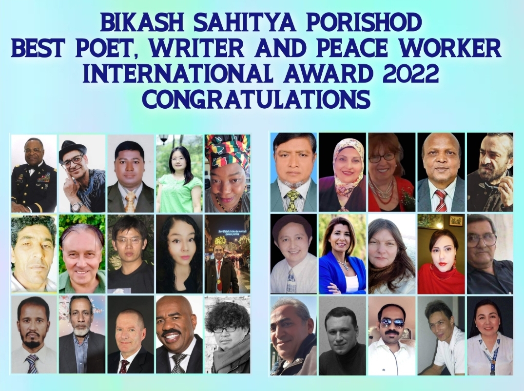 Best Poet Writer and Humanitarian Peace Activist Award 2022 is announced. The award was announced by Bikash Sahitya Parishod’s Honorable Founder President Md. Nazmul Kabir.