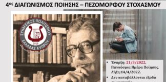 4ος Διαγωνισμός ποίησης – πεζόμορφου στοχασμού «Για τον Μανόλη Αναγνωστάκη» 21/3/2022...