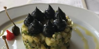 “Πατατοσαλάτα με μαύρο ταραμά από μελάνι σουπιάς”