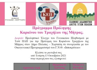 Δήμος ΠΥΛΑΙΑΣ-ΧΟΡΤΙΑΤΗ – ΔΩΡΕΑΝ ΕΛΕΓΧΟΣ Πρόληψης του Καρκίνου του Τραχήλου της...