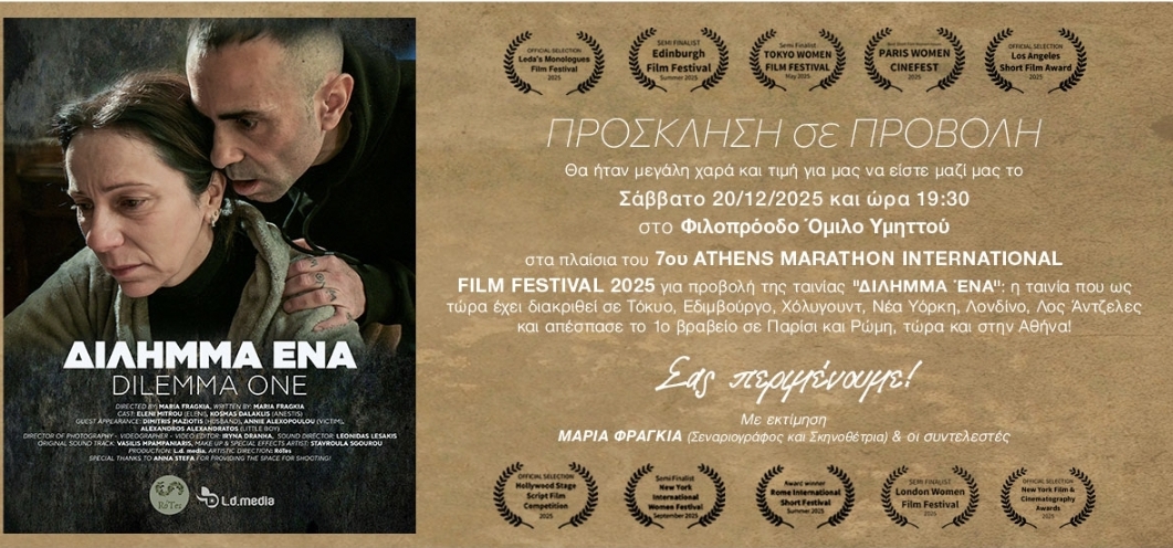 Η παρουσία σας στην προβολή αποτελεί ουσιαστικό μέρος του διαλόγου που ανοίγει το «ΔΙΛΗΜΜΑ ΕΝΑ».