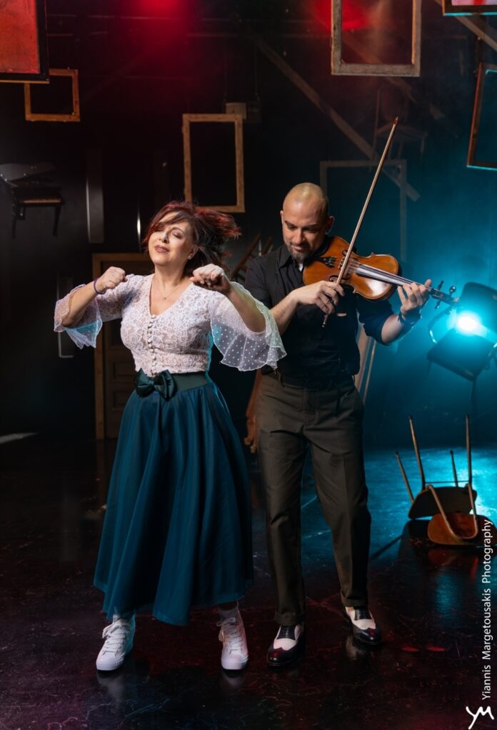 Eπι σκηνής η αέρινη Μιρέλλα Πάχου τραγουδά παίζει ακορντεόν και όχι μόνο. Στο βιολί ο Αλέξανδρου Ιακώβου.