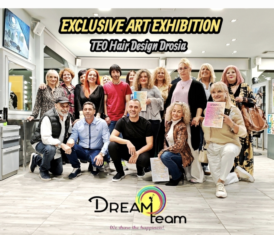 Η Dreamteam πάντα πρωτοπόρα, πιστή στη προαγωγή των Τεχνών και στη πρόοδο των Καλλιτεχνών, παρουσιάζει για τρίτη φορά την συλλογική rotation έκθεση Τέχνης ”ΕΧCLUSIVE” ελεύθερου θέματος, στα ΤΕΟ Hair Design Δροσιάς από τις 3 Νοεμβρίου έως τις 15 Δεκεμβρίου 2025!