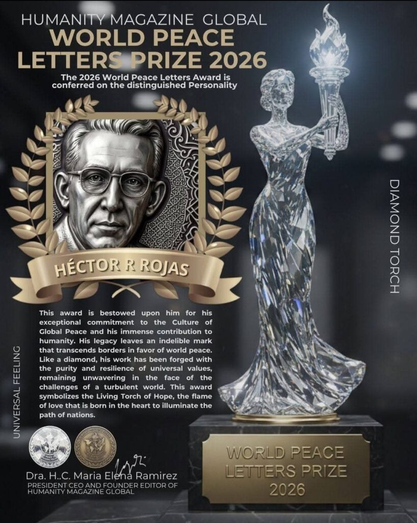 HUMANITY MAGAZINE GLOBAL PRESENTA EL PREMIO MUNDIAL “ANTORCHA DE DIAMANTE” 2026 a las Ilustres Personalidades presentes en la 13 Edición En Portada de Humanity Magazine Global y que por primera vez reciben este Galardón de alto honor, nacido de una lucha incansable y diseñado para reconocer a las Ilustres Personalidades que han decidido dejar una huella indeleble en la historia de la paz mundial. La Previa de Galardonados en la Primera Emisión dió paso a esta nueva Entrega.