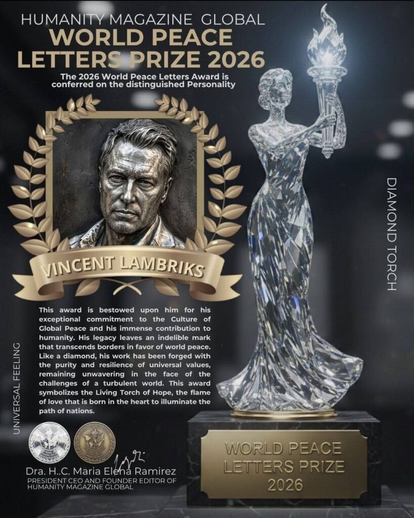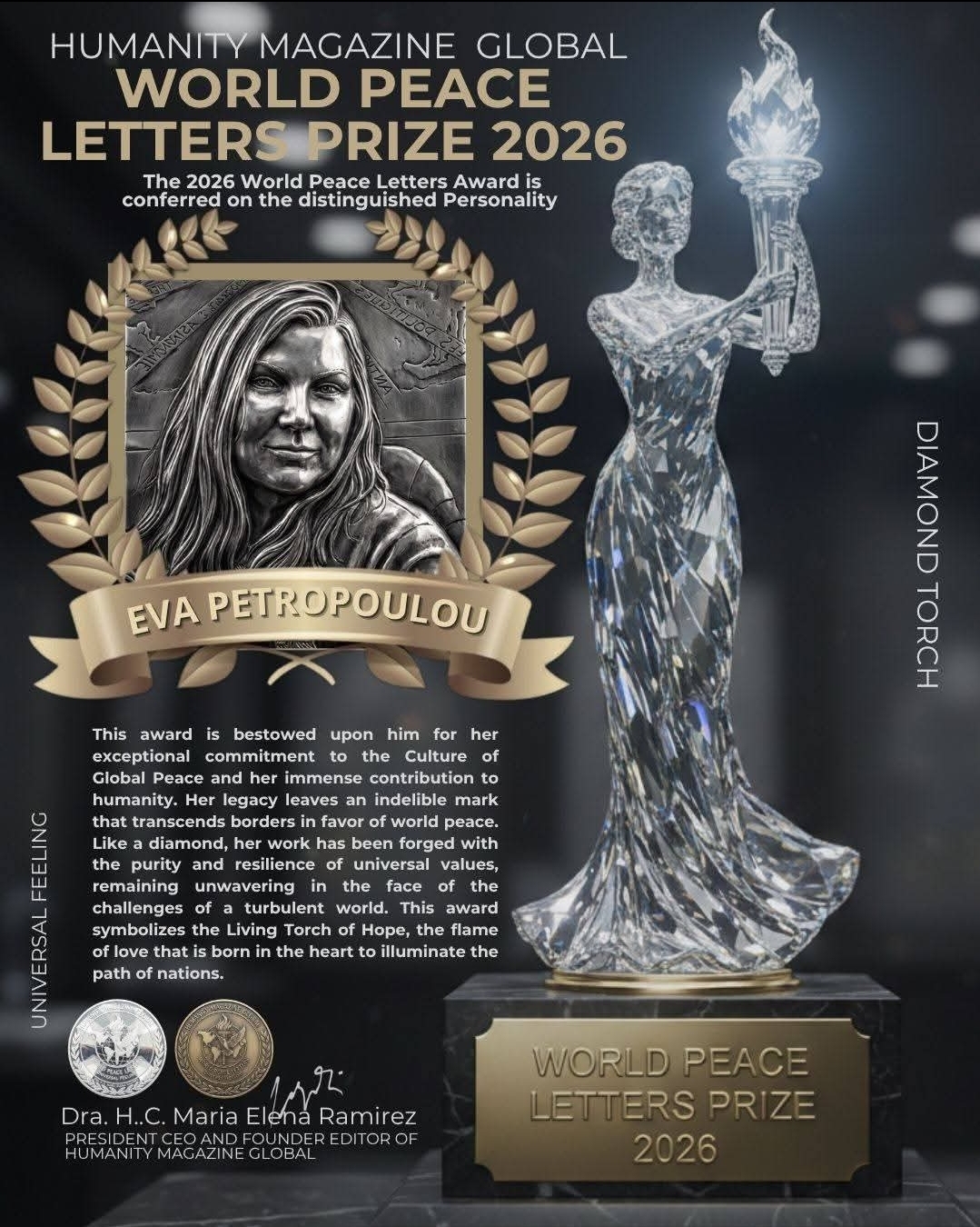 Παρουσιάζοντας το Διοικητικό Συμβούλιο Τιμώντας Βαθύτατα τους Βραβευμένους του εναρκτηρίου Βραβείου μας 2026 ΠΟΥ ΗΤΑΝ ΠΑΡΩΝ ΣΤΟ ΠΡΩΤΟ ΒΡΑΒΕΙΟ: ΥΠΕΡΑΣΠΙΣΤΕΣ ΤΗΣ ΠΑΓΚΟΣΜΙΑΣ ΕΙΡΗΝΗΣ· λαμπρά μυαλά και γενναίες καρδιές που επαναπροσδιόρισαν τα όρια της Λογοτεχνίας, της Παιδείας, της Τέχνης σε όλη της την Έκφραση, του Πολιτισμού Συμπαντικού, της μουσικής. Προσθέτοντας την πρόοδο στις Επιστήμες Υγείας, τη Νευροεπιστήμη, τον Αθλητισμό και την Πνευματικότητα, αποτελεί το θεμέλιο του παρόντος Τύπου στο Εξώφυλλο της 12ης Έκδοσης του Humanity Magazine Global αφήνοντας ένα αποτύπωμα Ειρήνης που χτυπά στην καρδιά της ανθρωπότητας.