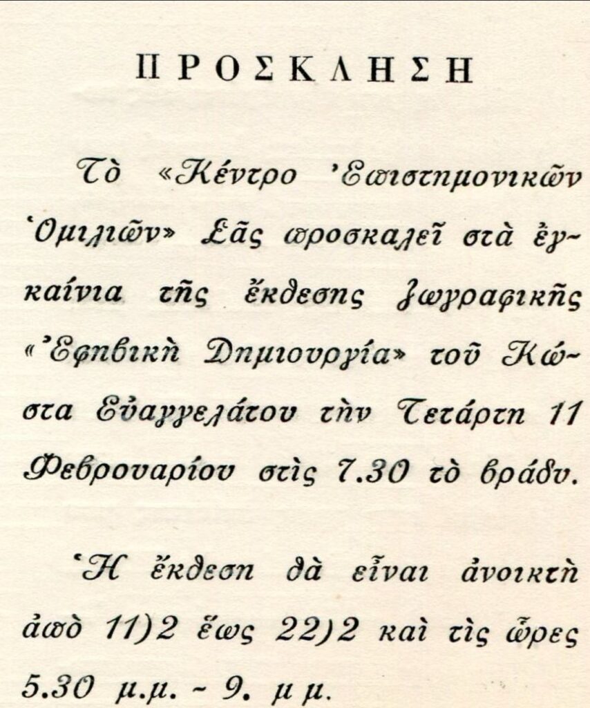 Η πρώτη έκθεση ζωγραφικής του Κώστα Ευαγγελάτου στην Αθήνα το Φεβρουάριο του 1976