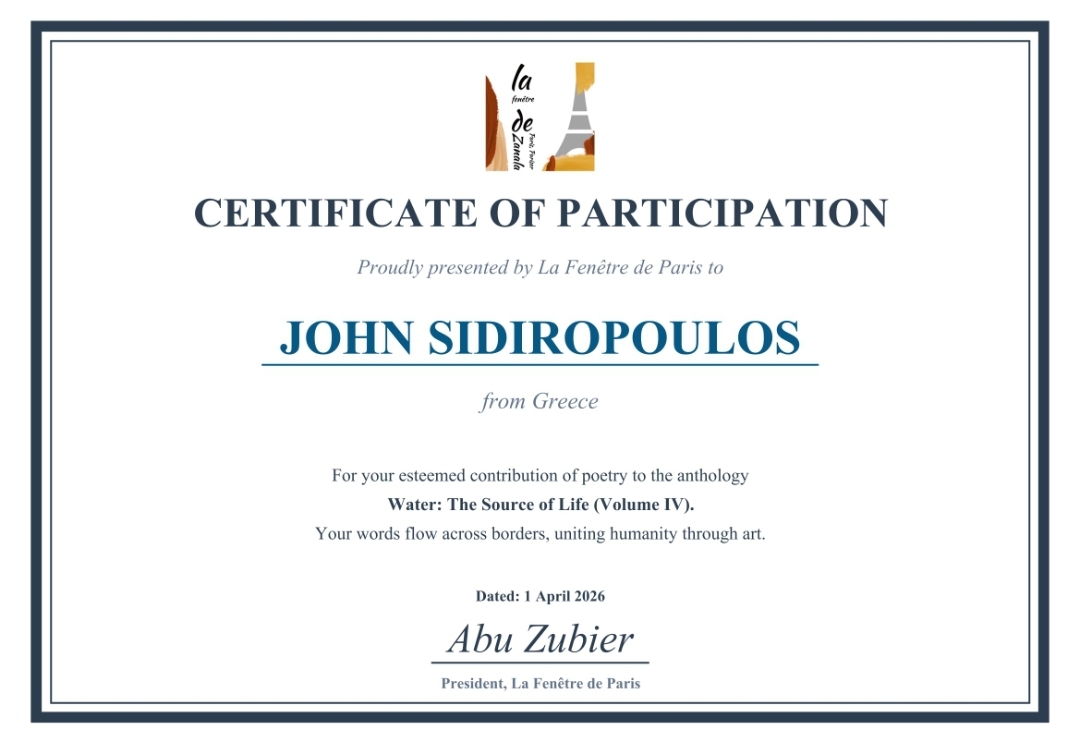Η λογοτεχνική φωνή του Σιδηρόπουλου δεν περιορίζεται μόνο στην Ελλάδα. Τον ίδιο χρόνο, το αγγλόφωνο ποίημά του «LOVE» κατάφερε να ξεχωρίσει στο Μαρόκο, υπό την επιμέλεια του εκδότη Mohamed Ellaghafi, και εντάχθηκε στην διεθνή ποιητική ανθολογία της Ένωσης Μαροκινών Δημιουργικών Συγγραφέων με τίτλο «A Global Poetic Anthology – The University of Moroccan Creators». Είναι αξιοσημείωτο ότι από την Ελλάδα διακρίθηκαν μόνο δύο ποιητές, γεγονός που υπογραμμίζει τη σημασία της διάκρισης.