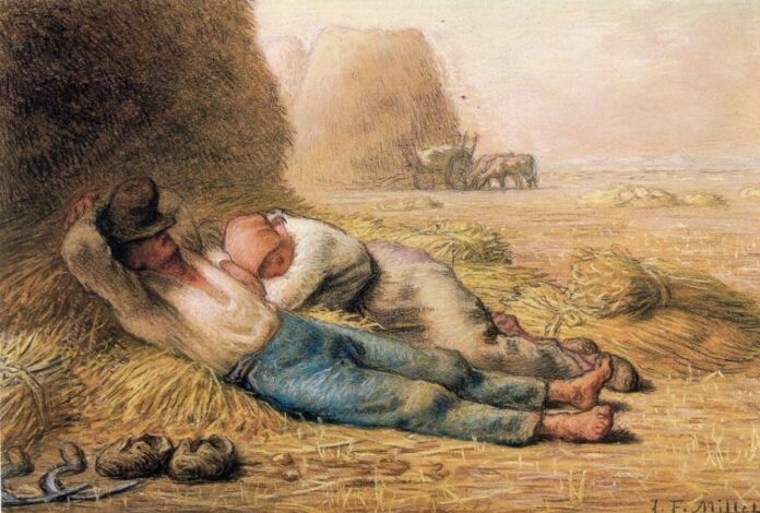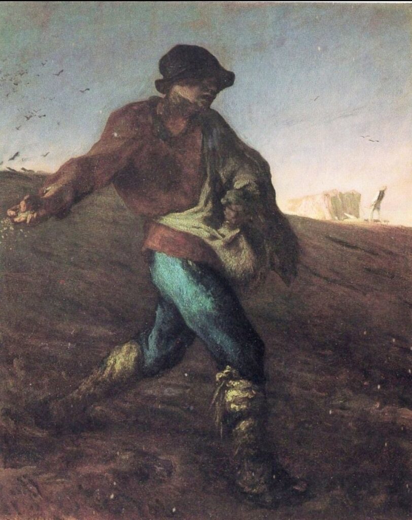 Ο Ζαν Φρανσουά Μιλέ / Jean-François Millet γεννήθηκε στο αγροτικό χωριό Γκρουσί της Νορμανδίας το 1814. Οι ιερείς του χωριού του καθοδήγησαν την διαπαιδαγώγηση του, διδάχθηκε λατινικά, ενώ μελέτησε σημαντικούς συγγραφείς. Βοηθούσε τον πατέρα του στις αγροτικές εργασίες και εξοικειώθηκε με όλες τις φάσεις της αγροτικής ζωής. Έμαθε να αλωνίζει, να λιχνίζει, να οργώνει, να σπέρνει. Όλα αυτά ήταν τα βασικά βιωματικά μοτίβα που χαρακτήρισαν αργότερα τις ρεαλιστικές συνθέσεις του.