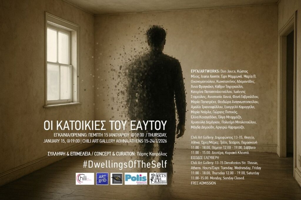 Ο επιμελητής τέχνης Πάρης Καπράλος σε συνεργασία με εικαστικούς καλλιτέχνες από την Ελλάδα και το εξωτερικό σας προσκαλούν να επισκεφθείτε την έκθεση “Οι κατοικίες του Εαυτού” και να τιμήσετε με την παρουσία σας τα εγκαίνια της τηv Πέμπτη 15 Ιανουαρίου ώρες 19:00 – 22:00.
