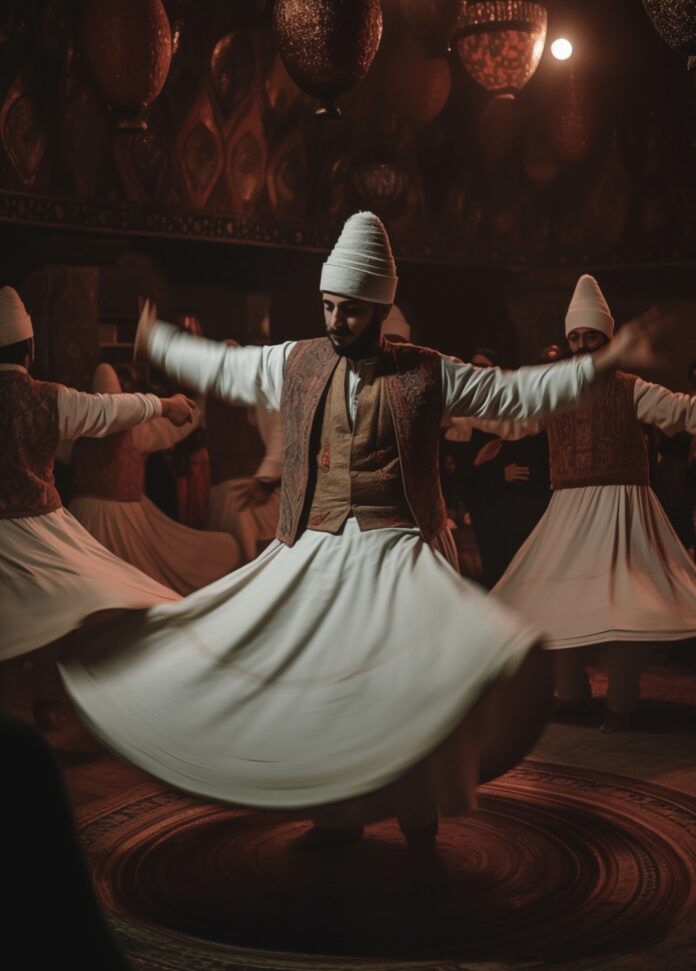 Ο τελετουργικός χορός των περιστρεφόμενων δερβίσηδων είναι η σεμά. Στριφογύριζαν με ανοιχτά τα χέρια, το ένα στραμμένο στον ουρανό και το άλλο στη γη υπό τον ήχο του νέι, ενός καλαμένιου αυλού, του κουντούμ, μικρού τύμπανου, του ρεμπάπ, ενός είδους κιθάρας και κάποιου είδους μεγάλου βιολιού, του κεμάν. Η έκσταση ήταν αυτή που χαρακτήριζε το χορό τους. Η σεμά προέκυψε από την ερωτική απογοήτευση (με έντονο το στοιχείο του μυστικισμού και της ένωσης με Εκείνον) του Τζελαλεντίν Ρουμί για έναν άλλο σούφι , τον Σαμς, τον Ήλιο.