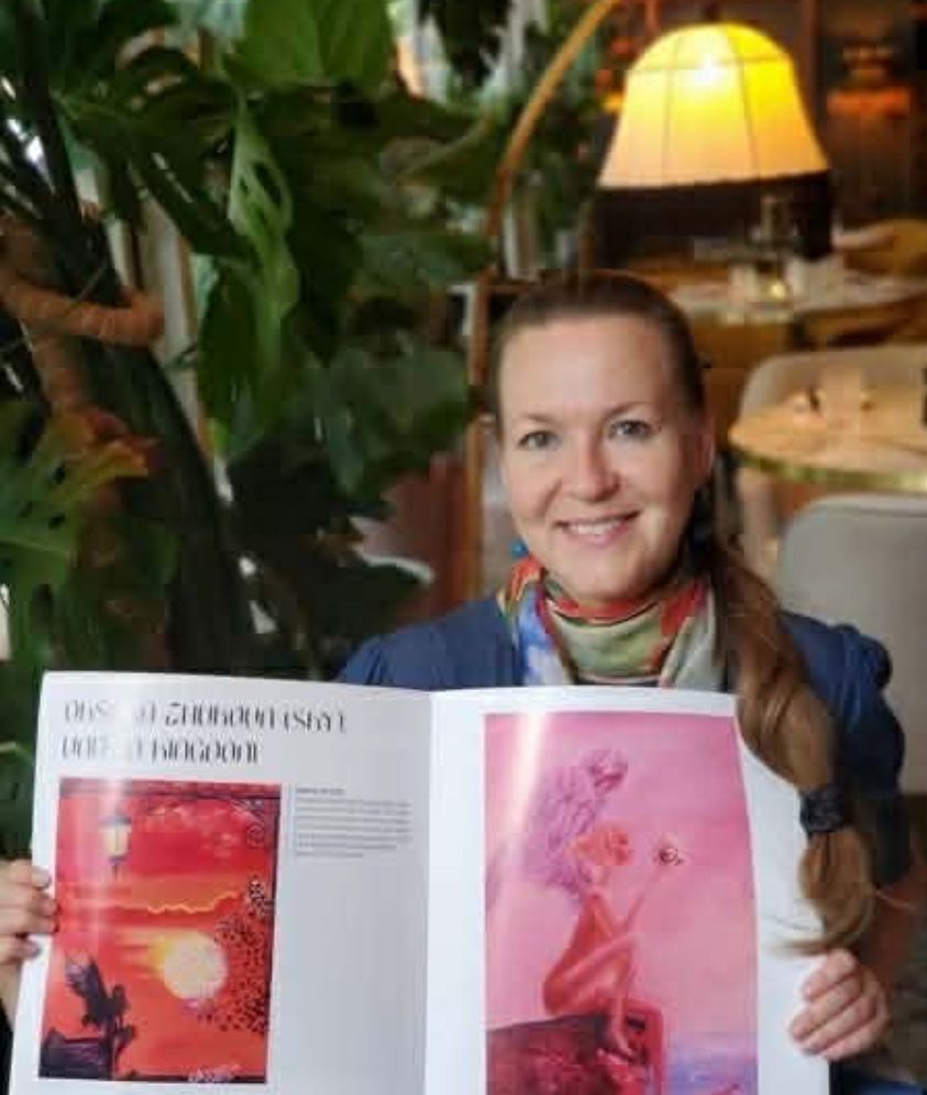 She defines her authorial genre as **“fairytale reality”**—a world where the ordinary blossoms into symbols, where the sky carries secret messages, and where every flower spreads the wings of a fairytale. Her paintings and texts transform reality into metaphor—and metaphor into a living part of the world—inviting the viewer and reader into a space where wonder is as natural as breathing. Through real images and symbols, she creates her own fairytale of life.