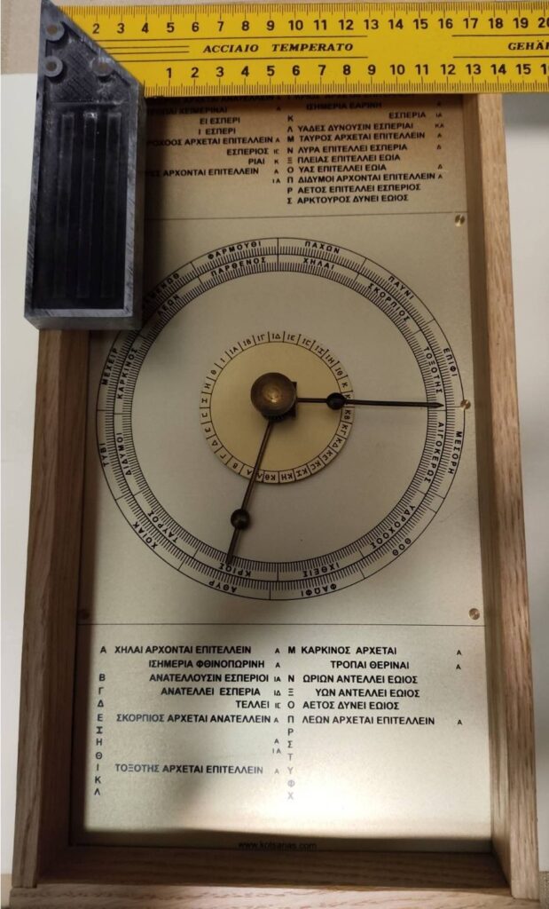 Συνοδεύεται από τεχνικές και αστρονομικές επιγραφές, ένα πραγματικό «εγχειρίδιο χρήσης», χαραγμένο σε όλες τις διαθέσιμες επιφάνειες της συσκευής.